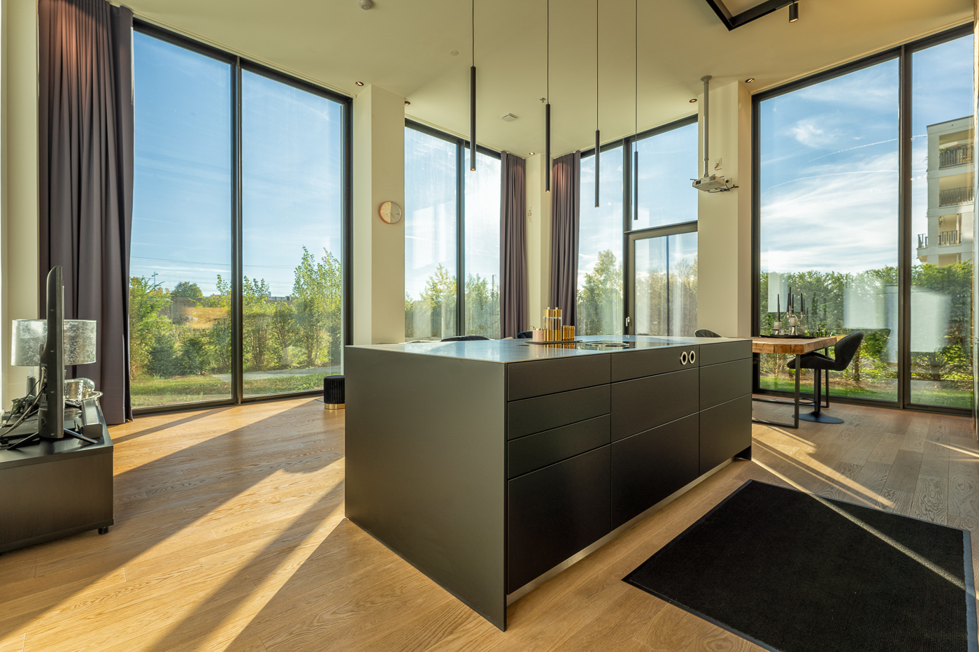 Raumkonzept zeichnen diese moderne Wohnung am Hirschgarten aus. Der FRIENDS-TOWER bietet nicht nur die Nutzung der Dachterrasse mit einem beeindruckenden 360-Grad Blick über die Stadt sondern auch einen