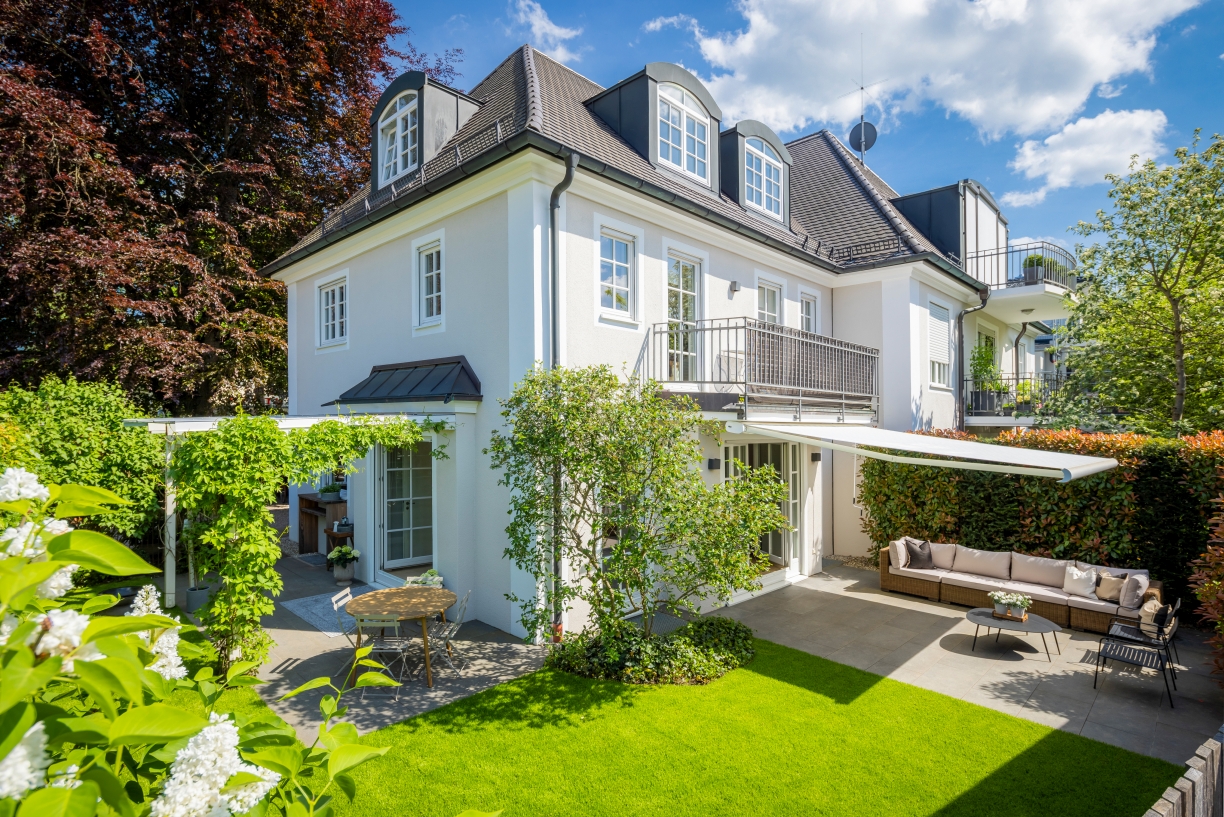 Die wunderschöne Stadtvilla, von viel Grün umgeben, befindet sich im Herzen von Alt Solln. Mit viel Liebe zum Detail orientiert sich das stilvolle Kleinod an der Formsprache klassischer Villenarchitektur. Ein harmonischer Baukörper. Elegante Fassaden mit Sprossenfenstern. Aufgelockert durch Balkone und Terrassen. Ein repräsentatives Domizil. Aber unaufdringlich – mit Understatement. Eine Familien-Residenz mit perfekter Raumaufteilung.