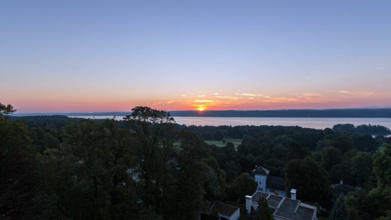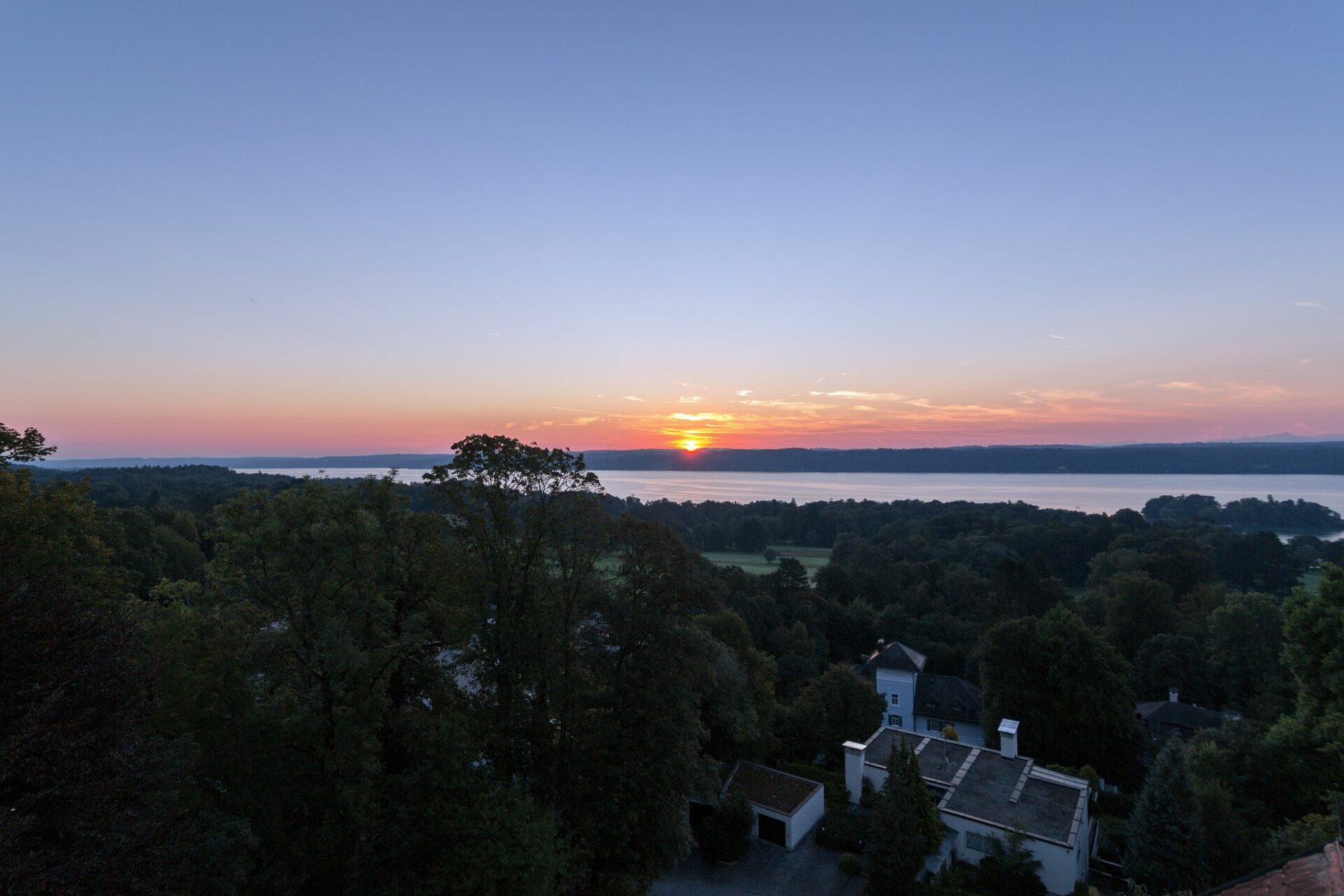Ein Ausblick wie auf eine Opernbühne. Traumhaft. Poetisch. Verzaubernd. Mit jedem Schritt entfaltet sich beim Betreten der Dachterrassenwohnung ein immer imposanter werdender 180º Panoramablick über den gesamten Starnberger See. Als dramatischer Abschluss die Bergkette der Alpen, wie ein endloses Gemälde aus wechselnden Farben, Licht und Schatten.